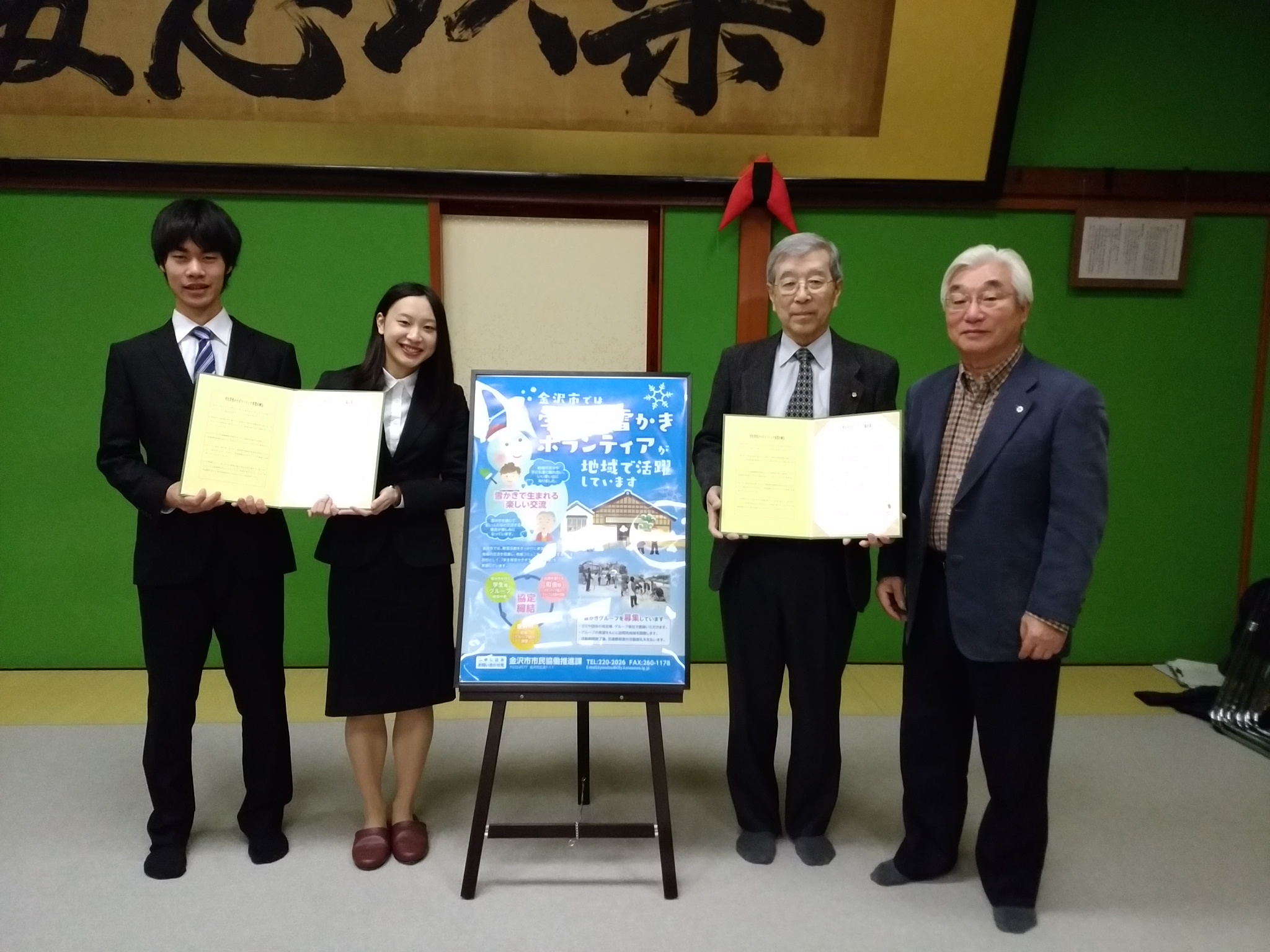 馬場校下は今年も金沢大学地域創造学類のボランティア志望学生と9シーズン連続の協定を結びました。